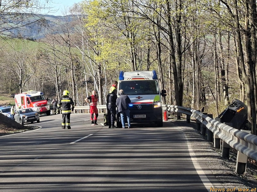 Zu einer Fahrzeugbergung wurden die Mitglieder der FF Krumbach am Nachmittag des 7. April 2026 auf die Hochneukirchenstraße (L146) alarmiert. In einer Kurve kam ein Lenker aus unbekannter Ursache mit seinem PKW von der Fahrbahn ab und kam hinter einer Leitschiene seitlich an einem Baum zum Stillstand.