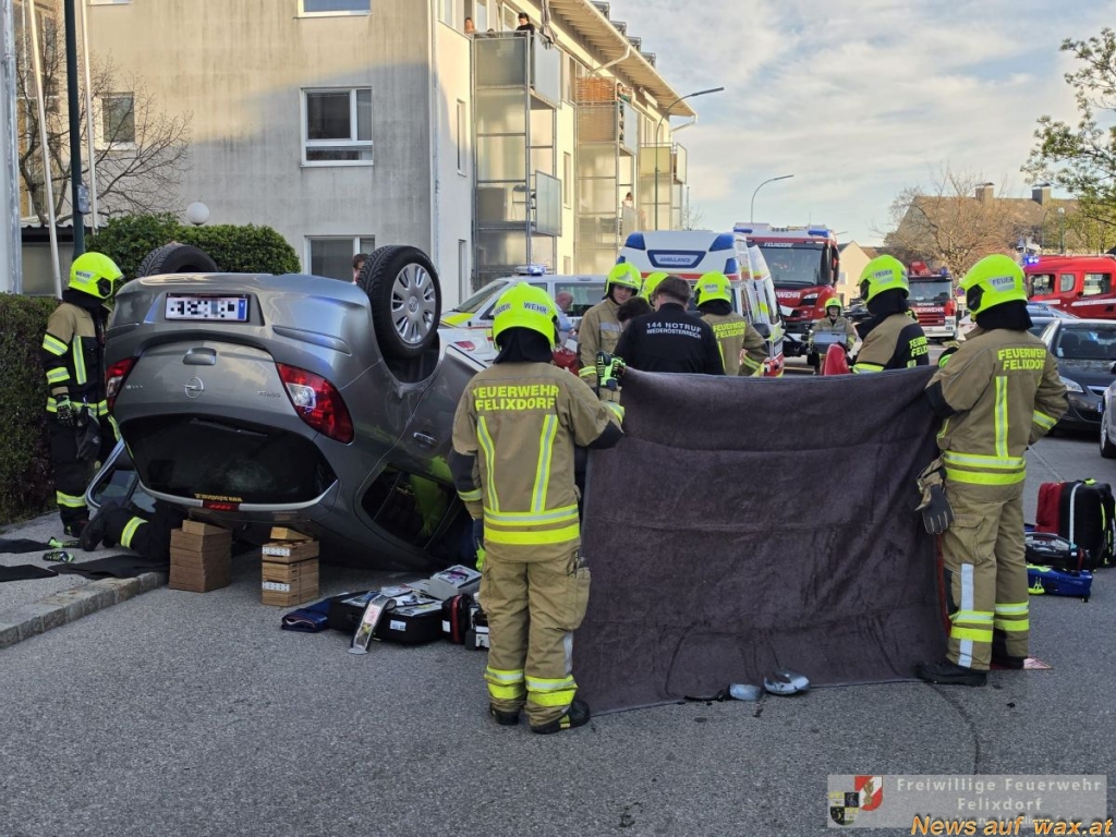 NÖ: Fahrzeugüberschlag in der Fabrikgasse in Felixdorf (xxxxxxxx)