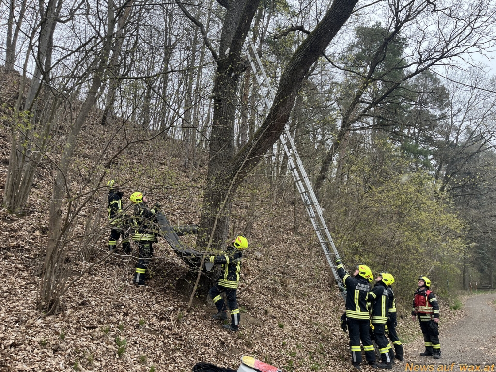 Freitagvormittag wurden die Einsatzkräfte der Feuerwehr Waidhofen/Thaya zu einer Tierrettung alarmiert. Eine Katze befand sich seit dem Vortag auf einem Baum in rund 8 Meter Höhe. Der Besitzer machte sich Sorgen und verständigte die Einsatzkräfte, da die Katze den Baum nicht selbständig verlassen wollte.